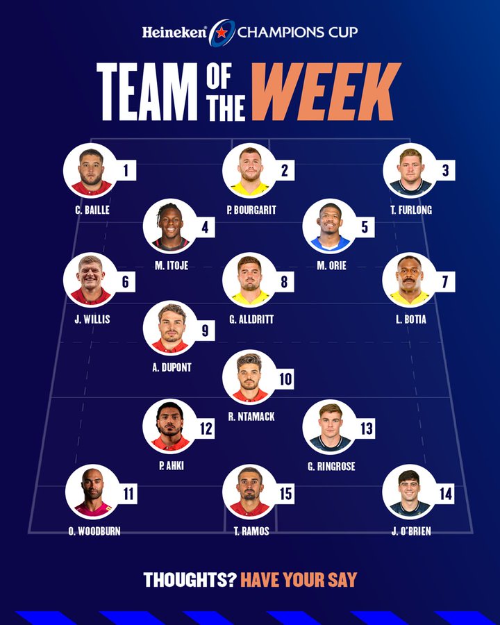 Stade Toulousain domina el Equipo de la Semana de la Heineken Champions Cup, con seis jugadores elegidos después de una gran presentación en la victoria sobre Cell C Sharks en uno de los cruces de cuartos de final.