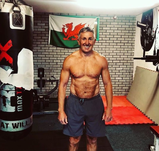 Menos cervezas guinness y más trabajo duro han visto a la ex estrella de Gales transformarse durante el encierro. ¡Se ve increíble a los 60 años!