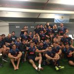 “Al principio, fallamos un poco en el tackle uno contra uno. Arreglamos eso y acomodamos cosas. Estamos lejos de ser perfectos, pero felicito a los chicos por lo que han hecho hoy. Hoy, ganamos acá después de 35 años”.