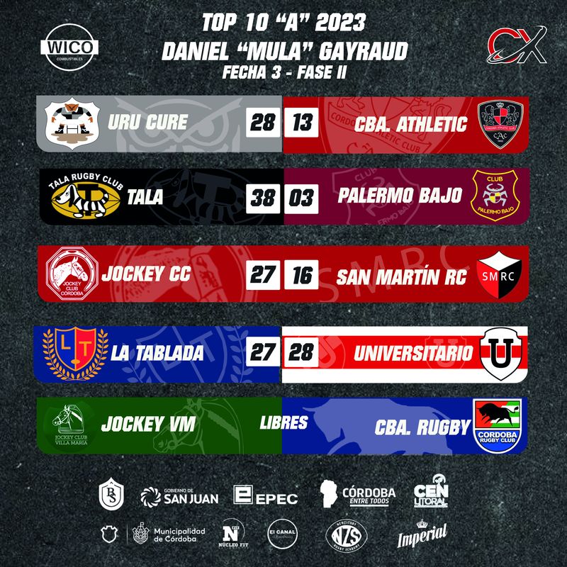 De esta manera y más allá de que todavía restan dos jornadas para el cierre de la Fase II, Jockey de Córdoba y Urú Curé esperan por sus rivales en semifinales que saldrán de los cruces entre Córdoba Athletic frente a Tala Rugby Club y San Martín de Villa María que será anfitrión de Universitario en instancia de playoffs.
