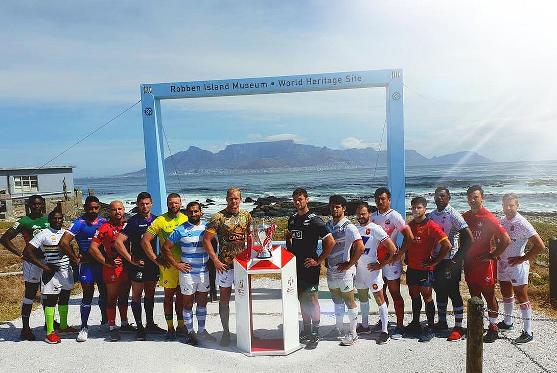 Los dieciséis capitanes posaron en el icónico marco azul de Robben Island en la previa al HSBC Cape Town Sevens, que se jugará este fin de semana en Ciudad del Cabo. Los...