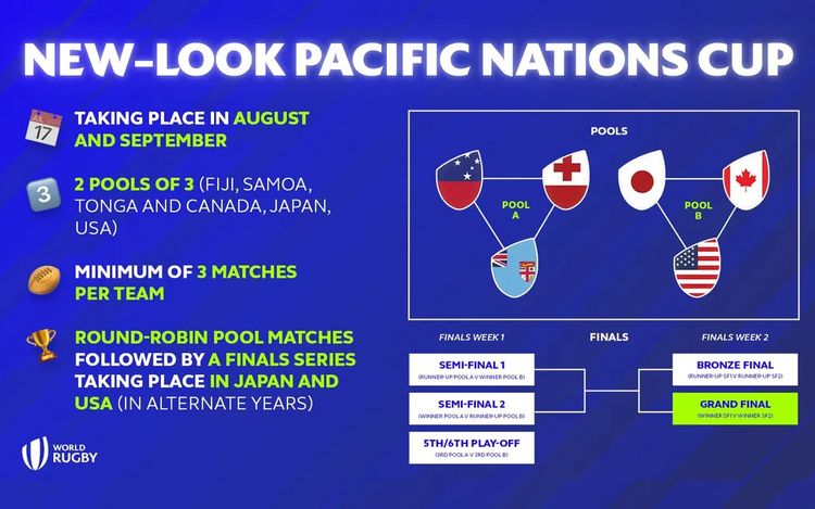 Aprobado por el Consejo de World Rugby, el nuevo Pacific Nations se jugará en la ventana de agosto y septiembre en el hemisferio sur, contará con dos grupos de tres equipos: uno de América del Norte/Japón y otro de las Islas del Pacífico, con cada unión organizando partidos.